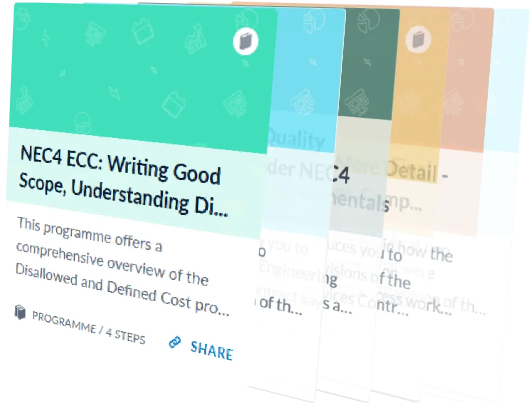 Online construction courses for NEC, JCT FIDIC, and more.